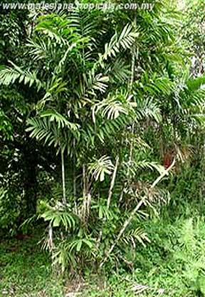 Description: This species originates in the moist forests of northern Australia and New Guinea but it is now cultivated widely throughout the tropics. It is a medium-sized clump-forming palm with a thick crown of pinnate leaves.