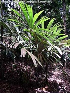 Description: This rare giant fan palm is a native of Borneo where it grows in shady lowland rainforest. The wide leathery leaves are dark green above and pale beneath. The seeds are very large and heavy (250gms+) with a fibrous coating.