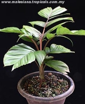 Description: A Bornean endemic, this rare species grows in shady forest on damp sandy soils. It is a dwarf palm, seldom reaching more than a meter in height, with rounded leaves divided into broad rectangular segments.